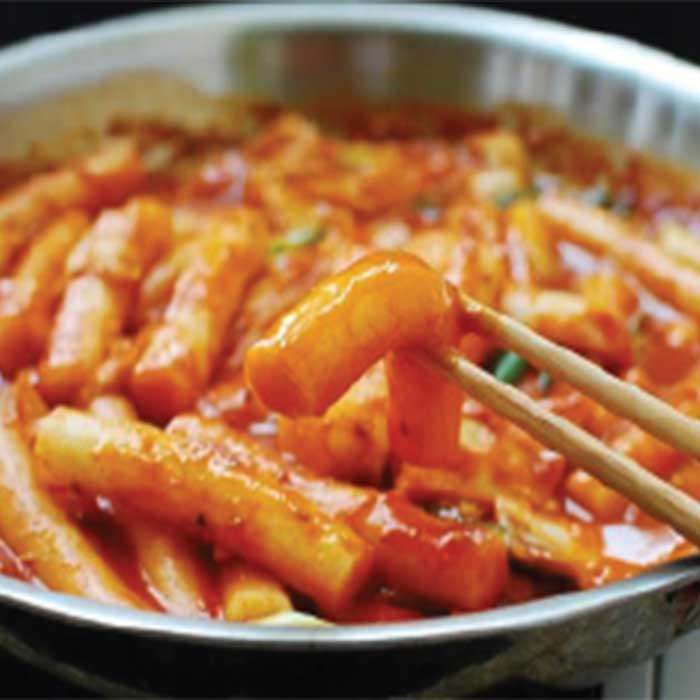 1๏ธโฃ Korean ‘Tteokbokki’ (rice cake) w. gochujang sauce & Artisan cheese blend